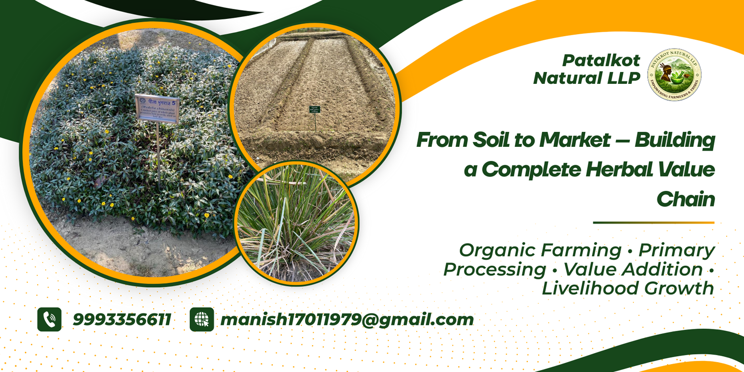 PATALKOTNATURAL LLP works across cultivation, primary processing, and value addition of medicinal and aromatic plants.